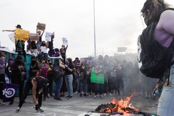 “¡Juntas somos fuego, quemen todo!”, se leía en una pancarta. “¡Tiemblen, feminicidas!”, repetían a gritos las manifestantes.
