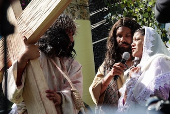 En medio de la multitud de personas que se congregó para la representación de la Pasión de Cristo en la alcaldía Iztapalapa, Jesús continuó con su procesión al Cerro de la Estrella.