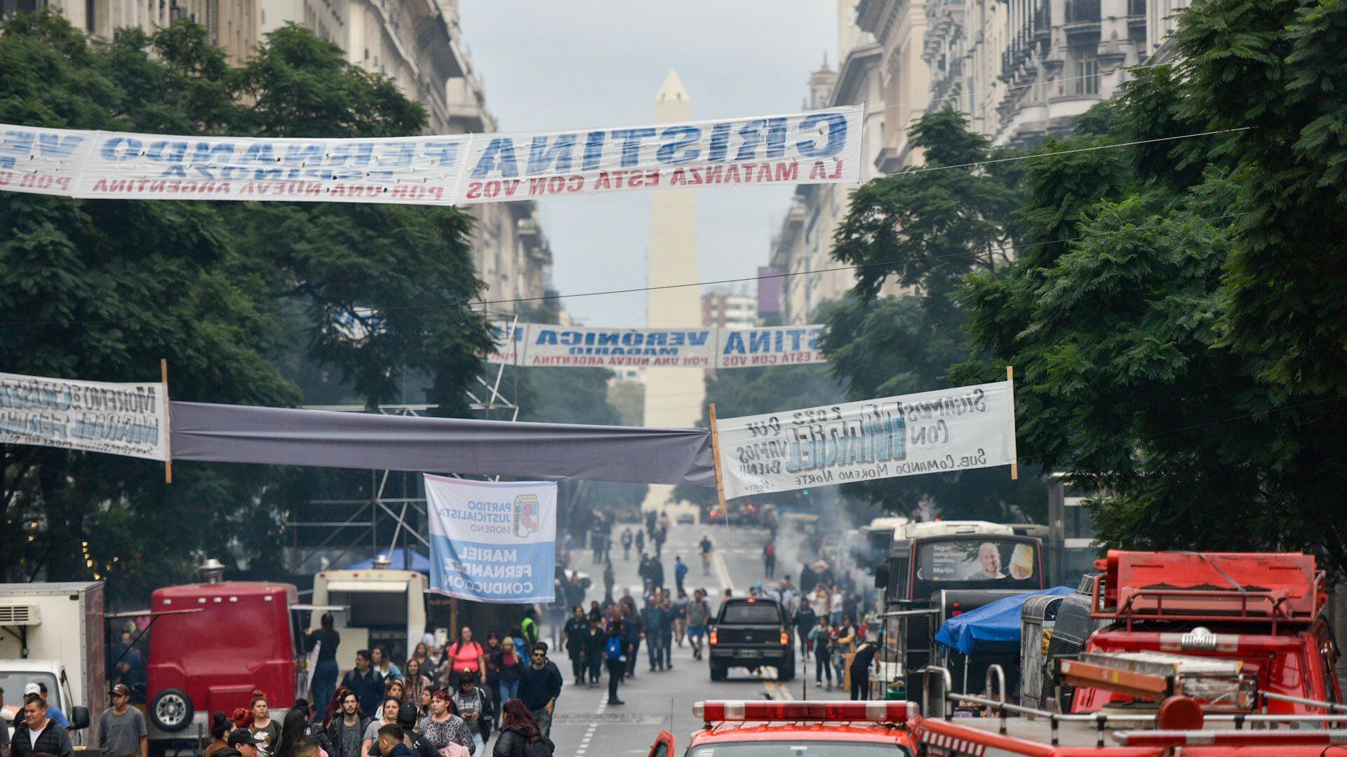 "En un ratito nos vemos", había comentado CFK a través de su cuenta oficial en Twitter, a casi una hora del inicio del acto. Mientras, tras haber concentrado en Avenida 9 de Julio, la militancia se dirigía hacia el lugar en el que se pautó el discurso