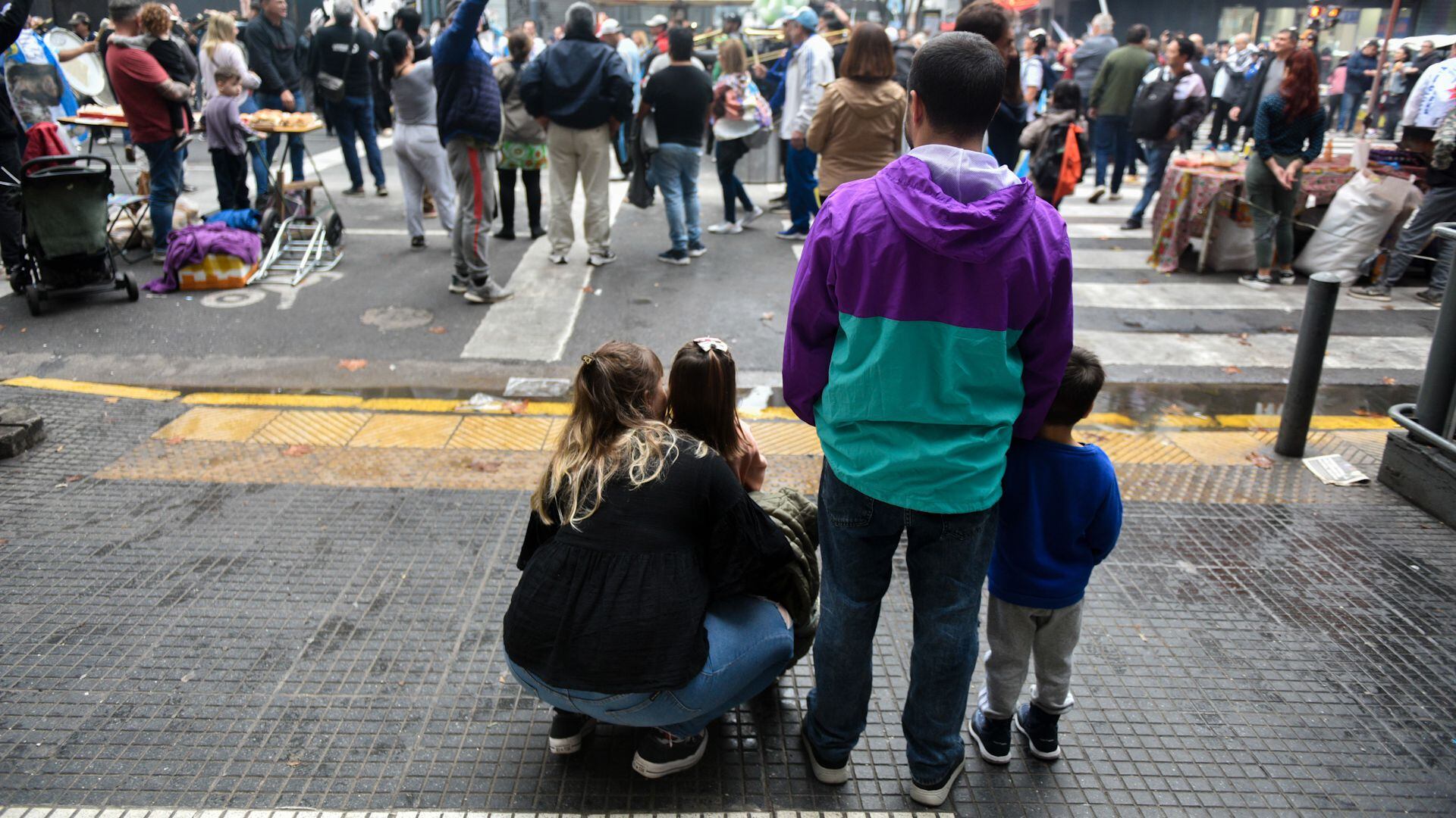 Como en cada movilización, en la zona no faltaron los vendedores ambulantes. Los choripanes se vendieron a $1.000, la bondiola completa a $1.300 y las tres tortas fritas a $280. Además, teniendo en cuenta las precipitaciones previstas, también se vendieron pilotos para la lluvia, a $400