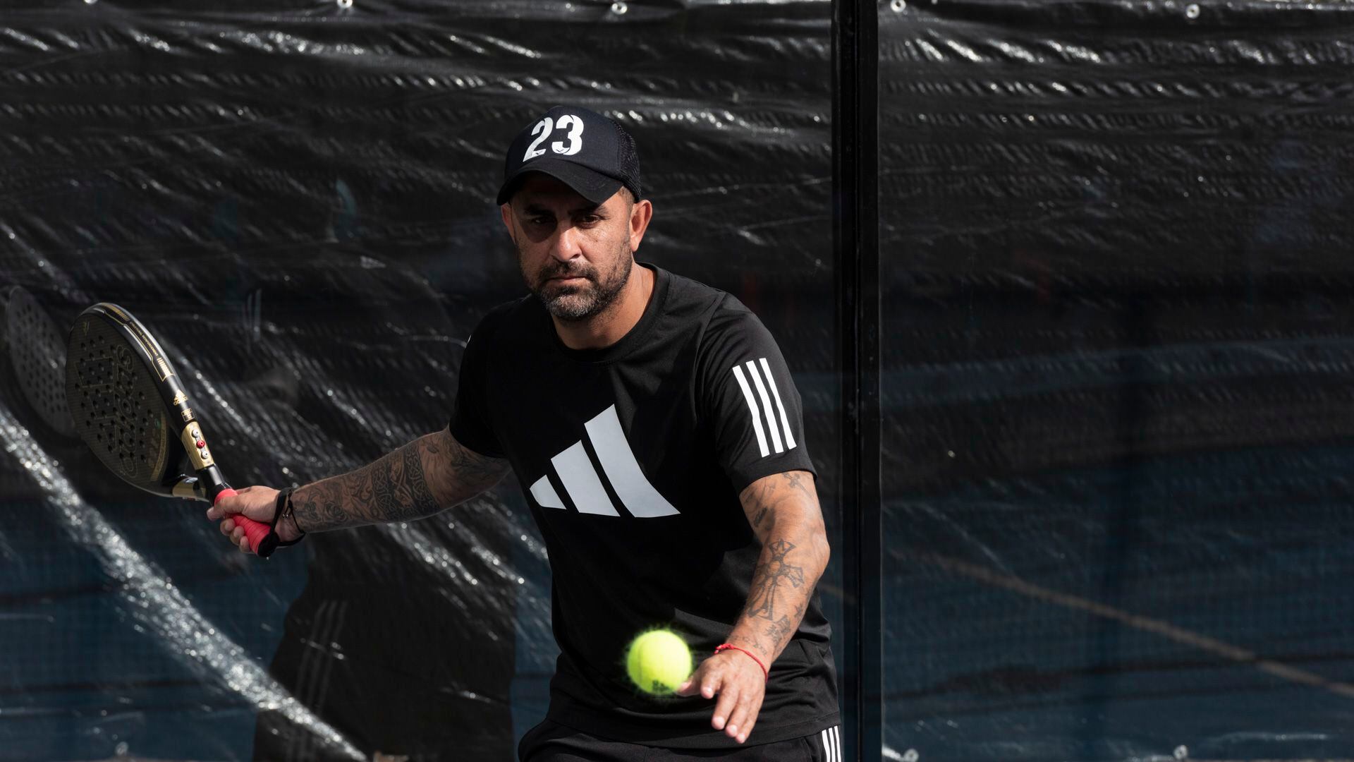 Rolfi Montenegro se animó a jugar en el estreno de Lasaigues Padel Leloir (Adrián Escandar)