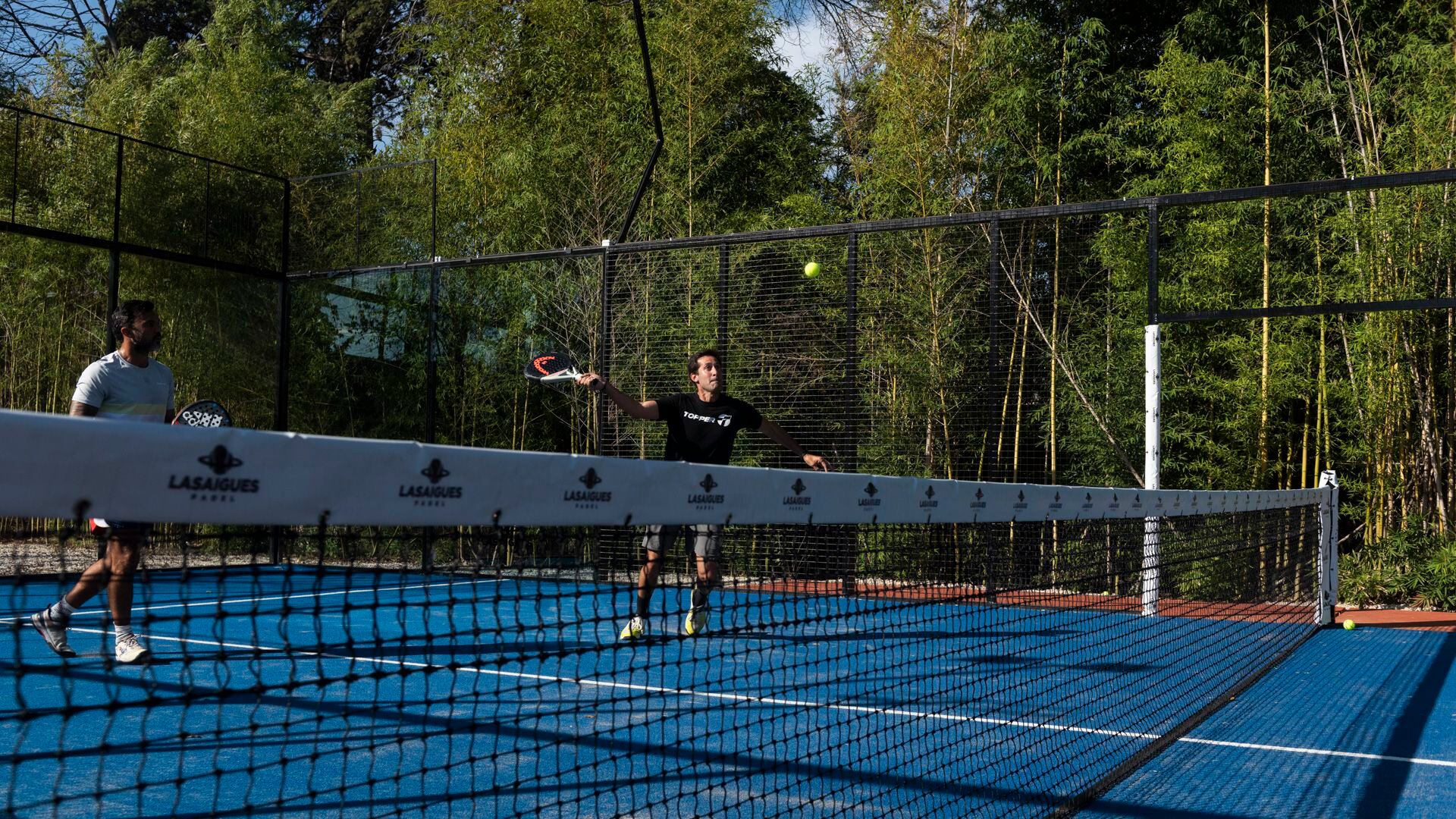 Las canchas del Lasaigues Padel son de última generación, con césped sintético, postes de luz estilo WPT y son resistentes a cualquier clima del año (Adrián Escandar)