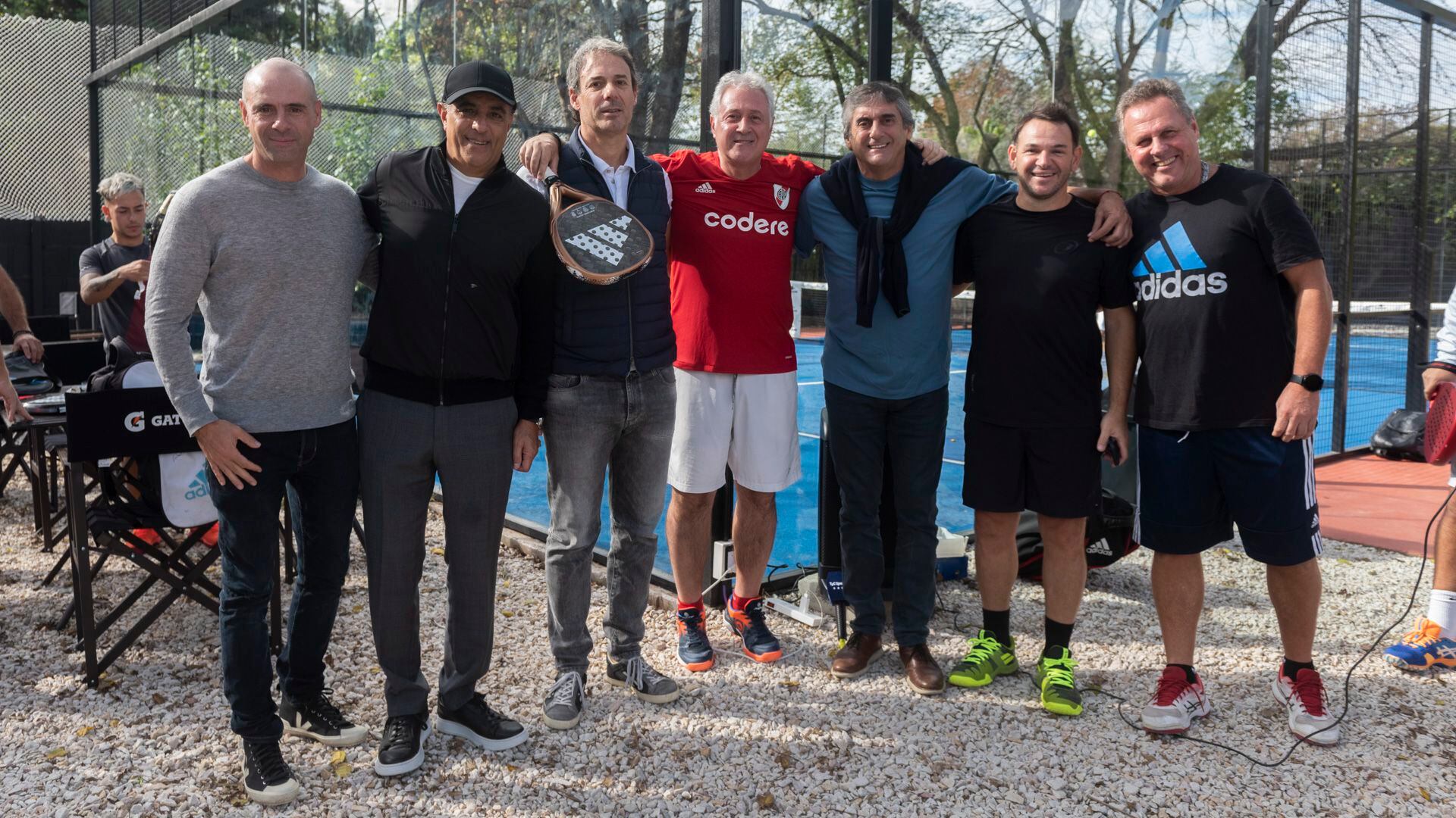 Varias figuras del club millonario se dieron cita en la inauguración de las canchas de Lasaigues Padel Leloir. Enzo Francescoli, Rolfi Montenegro, Mora y Ponzio, entre otros, presentes en la apertura junto al vice Patanian