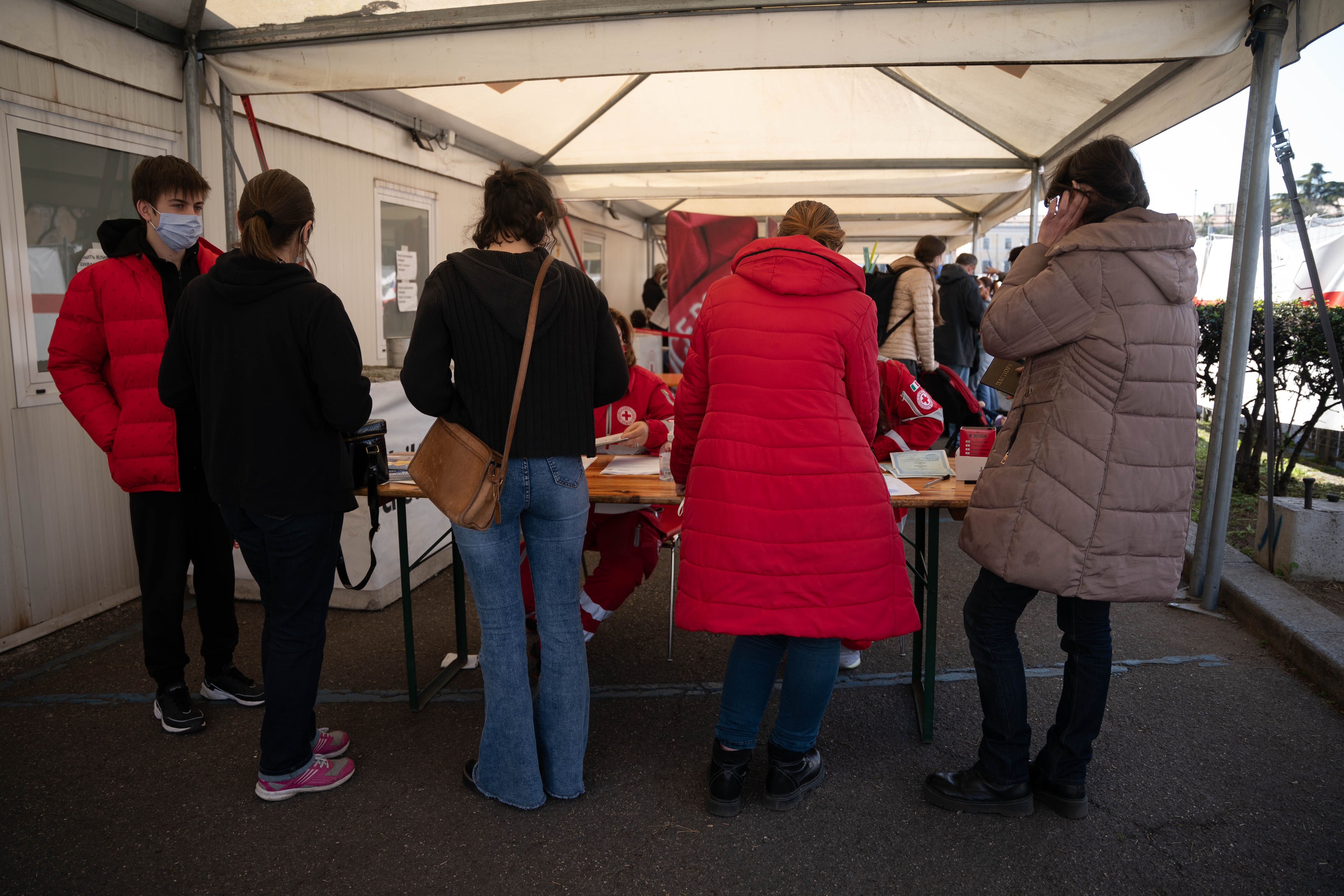 À seulement 50 mètres, sur la place en face de Termini, la gare romaine, des dizaines d'Ukrainiens s'approchent timidement des tentes de la Croix-Rouge italienne pour se faire vacciner, se faire tester et recevoir des conseils de santé.