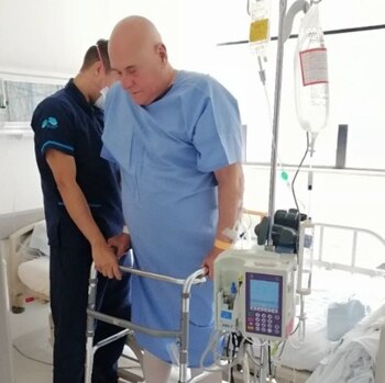 Grâce aux derniers messages publiés sur ses réseaux sociaux, l'acteur cubain Jorge Cao a quitté une chambre d'hôpital à l'aide d'un déambulateur pour se mobiliser, en plus d'une infirmière qui le soutient également.