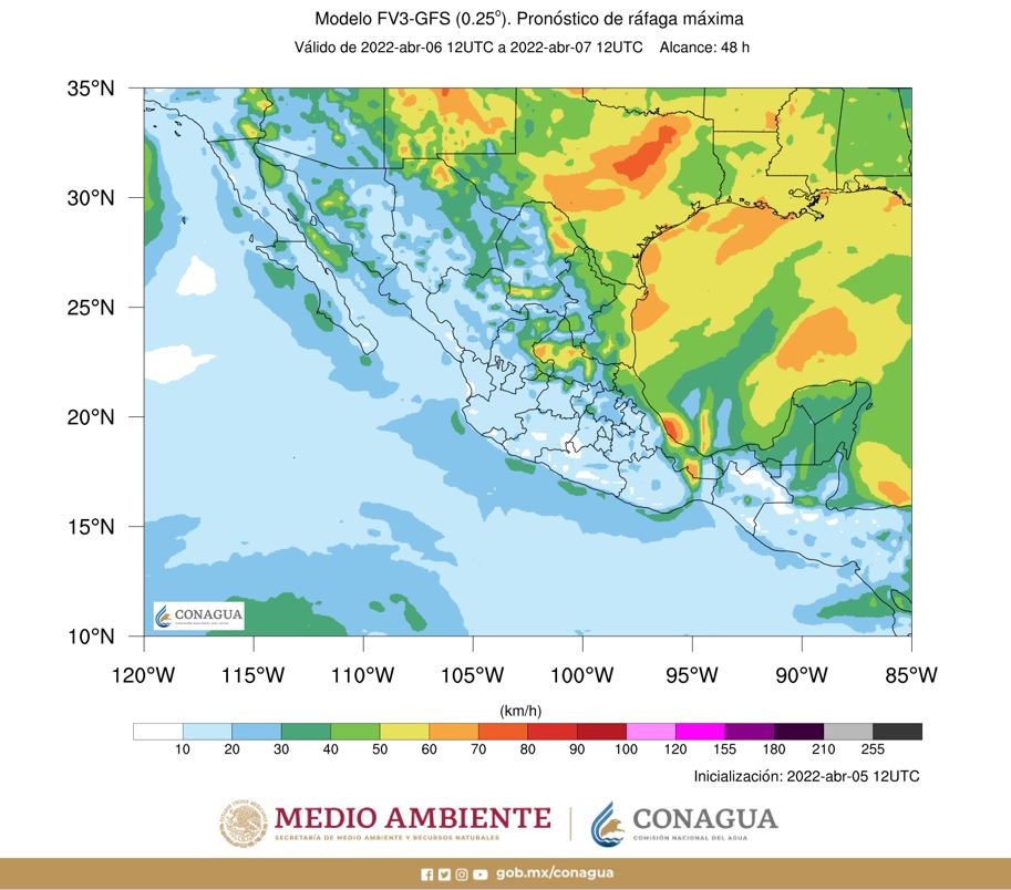 Le Mexique enregistrera des températures minimales allant jusqu'à -10° C dans les régions montagneuses de Durango et jusqu'à -5° C dans le Chihuahua, Zacatecas et dans l'État du Mexique. En revanche, les sommets iront jusqu'à 45° C à Nuevo Leon, Tamaulipas, San Luis Potosí, Queretaro, Hidalgo, Puebla, Michoacán, Morelos, Guerrero, Oaxaca, Veracruz, Tabasco, Campeche et Yucatan, et jusqu'à 40° C en Basse-Californie, Sonora, Sinaloa, Nayarit, Guanisco, Colima, Ajuato, État de Mexico, Chiapas et Quintana Roo.