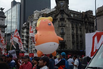 La idea del "Baby Trump" nació en el Reino Unido en julio pasado, cuando el presidente norteamericano visitó a la primer ministro de ese país, Theresa May. "Es un bebé porque Trump es como un niño, todo el tiempo diciendo cosas ordinarias y provocando por Twitter, caprichoso", cuenta Kennedy, que mañana viernes participará de la marcha desde 9 de Julio y San Juan hasta el Congreso.