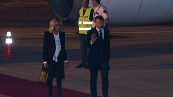 El presidente francés, Emmanuel Macron, vivió anoche en su arribo a la Argentina una situación extraña. Cuando bajó junto a su esposa del avión oficial que lo trasladó para participar no encontró a ningún funcionario argentino que lo recibiera. Miró para un lado, miró para el otro y ante la falta de señales saludó a dos empleados del aeropuerto que se encontraban al final de la escalera.
