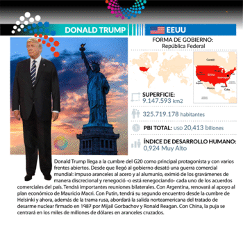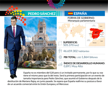 *Además de estos 20 líderes, que son los permanentes más España (invitado tradicional), este año participan el chileno Sebastián Piñera y el holandés Mark Rutte, ambos invitados de Argentina. Y también son de la partida los países que presiden organizaciones regionales como el presidente de Ruanda, Paul Kagame; el de Senegal, Macky Sall; y el primer ministro de Singapur, Lee Hsien Loong; y el primer ministro de Jamaica, Andrew Holness.