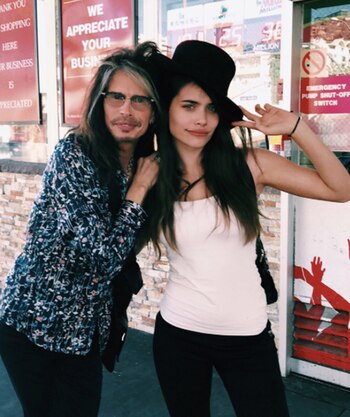 Se trata de Steven Tyler, cantante y líder de Aerosmith, y padre de la siempre bella Liv Tyler. No se conoce el contexto en el que fue sacada la foto pero, según muestra la secuencia de imágenes, hubo buena onda entre ellos.