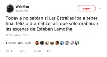 "Todavía no sabían si Las Estrellas iba a tener feliz o drámatico, así que solo grabaron las escenas con Esteban Lamote", escribió WaitMan. También se sumaron memes y muchos más comentarios ironicos contra Esteban.