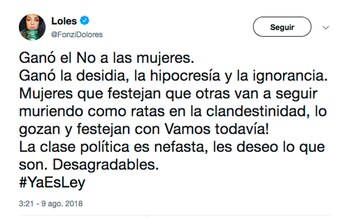 En una jornada histórica para la Argentina la legalización del aborto tuvo su debate en el Congreso y finalmente luego de la media sanción en Diputados, los senadores le dijeron "no"a la ley.