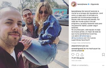 Y una hora antes de llevar tranquilidad desde Twitter, Jimena había explicado desde Instagram qué le pasó, junto a una foto en la que se la ve entrando a la clínica en brazos de su bailarín.