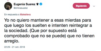 Finalmente, la actriz, ante los comentarios que le "sugerían" que lo mejor para los asesinos era la cárcel, no dejó dudas: "Yo no quiero mantener a esas mierdas para que luego los suelten e intenten reintegrar a la sociedad (que por supuesto está comprobado que no se puede) que no tienen arreglo", concluyó.