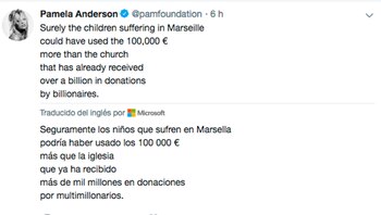 "Seguramente los niños de Marsella habrían necesitado más de esos 100.000 euros que esa catedral que ya ha recibido más de 1.000 millones de euros en donaciones de varios multimillonarios", concluyó.