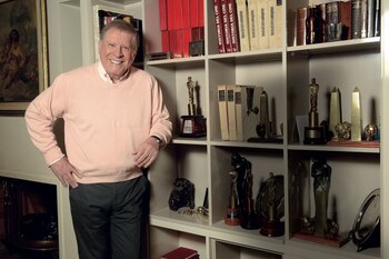Arturo Puig (73) aguarda detrás de la puerta, pero su perrita Luna (una Westie blanca que lo acompaña hace doce años) se anticipa y sale a recibir al equipo de GENTE. El living es amplio, tiene dos sillones (uno en forma de "L" y otro de cuatro cuerpos), un televisor y varios espejos. Hay, además, una biblioteca donde están expuestos los galardones que le han otorgado a él y a su esposa desde hace más de 40 años, la actriz Selva Alemán (73).