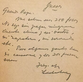 Le dejo al mismo tiempo una pequeña gratificación de doscientos pesos, incluidos en esta carta.