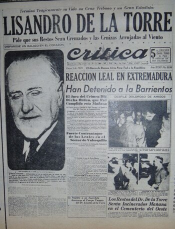 Ese jueves 5 de enero de 1939 recibió al abogado Díaz Arana. Quedaron en almorzar ese mismo día. El letrado ignoraba que De la Torre lo había citado para despedirse.