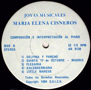 En 1984, dos años antes del arresto de López Rega, llegó el turno de Joyas Musicales, cuyo primer tema, "Para un corazón solitario", fue retomado por Cisneros en su canal de YouTube. Más de treinta años después de aquella grabación, la pianista y compositora aparece al piano tocando esa pieza "que desgrana con maestría los estados anímicos de un patriota en el exilio". No se sabe si se refiere a su marido o a Perón, aunque en YouTube aclara que está dedicada "a mi amado esposo ausente". Según se describe en el disco, el tema "Quinta 17 de octubre" es "otra joya musical", que pretende ser "el mensaje recordatorio hacia el refugio español de una gloria argentina exiliada durante muchos años".
