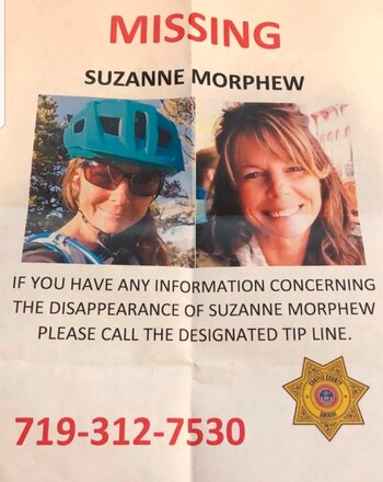 Las autoridades se trasladaron a la zona. Llegaron a una lujosa casa valuada en un millón y medio de dólares donde se encontraron con Ritter. Verificaron que en la vivienda de los Morphew había dos autos (el de Suzanne y el de sus hijas), pero curiosamente faltaba la bicicleta que ella solía usar. Supusieron, entonces, que algo podría haberle pasado durante un paseo por la montaña. Algún accidente. Las tareas de rescate empezaron esa misma tarde. A poca distancia, encontraron su bicicleta abandonada sobre un puente. También habrían encontrado, tirado, su casco. Comenzaba el misterio.