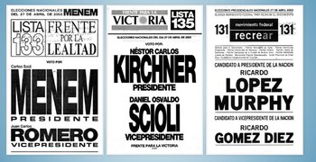 Las boletas de la elección presidencial del 2003, en las que terminó electo Néstor Kirchner.