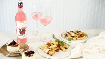 La pasta y el pollo son sabores suaves y se le agregan las hierbas aromáticas que aportan frescura al plato y maridan muy bien con los frutos rojos y el dulzor y frescura del producto.