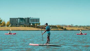 Todos los barrios tienen salida navegable a este imponente espejo de agua. El sector náutico, ubicado junto a la plaza central, ofrece en un amplio entorno acuático actividades como kayak, windsurf y paddle surf. Las tradicionales prácticas son complementadas por el wakepark más extenso del país. Cuenta con 240 metros de cable, 220 metros de riding, rampas y 8 módulos de saltos, en una playa con guardería, vestuarios y sector de gastronomía propio.