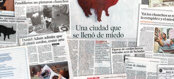 L'isteria collettiva stava progredendo e Adum non lo sapeva. Un giorno — come racconta Adum sul podcast NPR — il giovane artista ha ricevuto una chiamata da un giornalista del quotidiano El Universo, uno dei più grandi e importanti quotidiani dell'Ecuador. Il giornalista gli ha chiesto di confessare di aver dipinto i maiali, di avere informazioni che lo hanno reso responsabile dei dipinti. Adum ha solo detto di sapere dell'autore del progetto artistico e che le speculazioni sui maiali erano sbagliate. Nonostante ciò, il giorno dopo, in prima pagina, El Universo ha raccontato la notizia che era già nota a tutti: i Latin Kings hanno inviato un messaggio macabro attraverso 30 maiali dipinti a Guayaquil. Ancora una volta, Adum, all'età di 25 anni, ha ottenuto qualcosa di inaspettato: la notizia del suo lavoro è stata la testata di uno dei media più importanti dell'Ecuador.