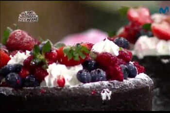 9. Una volta che la torta è fredda possiamo sformarla, se la facciamo finché è calda può rompersi. Possiamo decorare con zucchero a velo, chantilly e frutti di bosco.