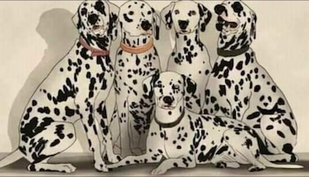 Come potete vedere, il dalmata era nascosto sul retro del dalmata che si trova all'estrema destra. È formato guardando i punti dell'animale. Ma dal momento che ce ne sono così tanti, all'inizio è difficile identificare questo grafico.