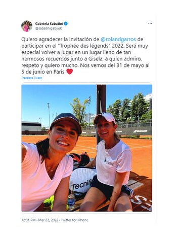 51歳で、ガブリエラ・サバティーニは再びテニスをします。彼女は自分のツイッターアカウントでそれを自分で確認し、ジセラ・ドゥルコが同行している画像も確認しました。彼が26歳で終止符を打った彼の輝かしいキャリアの中で育てたのは、全米オープン、グランドスラムではないでしょう。「ローラン・ギャロスが2022年の『トロフィー・デ・レジャン』に招待してくれたことに感謝したい。私が尊敬し、尊敬し、大好きなジセラとのこのような美しい思い出に満ちた場所で再びプレーすることは非常に特別なことです。パリで5月31日から6月5日までお会いしましょう、彼は自分のTwitterアカウントに書いています。