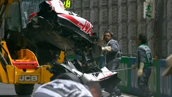 フォーミュラ1でセカンドシーズンで暮らす22歳のドライバーは、なんとか第1四半期を回避し、第2四半期には9位になり、フェーズが終了するまであと5分ほど残っていたことを覚えておく価値があります。ミックは12ターンでコントロールを失い、壁にぶつかった。そのイメージは印象的でした。車両は2つのタイヤを失い、片側で破壊されましたが、レッカー車がサーキットから取り外すためにそれを持ち上げたとき、それは決定的に壊れました。