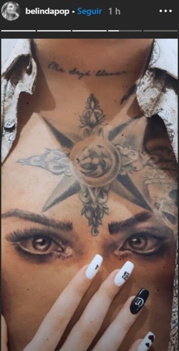 Nodalとの関係の真っ只中に、ベリンダは彼女の約束を果たし、彼女がすでに持っていたハートフィギュアの中の彼女の当時のボーイフレンドのイニシャルを「CN」に入れ墨しました。