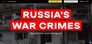 「ロシアの戦争犯罪。戦争中でも悪を超えて」は、爆撃中に鳴り響くサイレンの音の下で、ページの没入型体験中にウェブを強調します。「ロシアは規則を無視している。これらの規則は現在、独裁者であるプーチンによってウクライナに送られた何千人ものロシア人兵士によって、皮肉かつ不法に違反しています。爆撃する。破壊する。大量殺人を犯すために」と彼らは付け加えた。