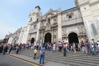 この聖金曜日、数十人の宗教信者がリマの大聖堂に入るために非常に早く並んでいました。リマのフェンシング。宗教的な典礼はありませんでしたが、人々はこの聖週間に入り、祈り、敬意を払うのを待っていました。