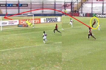 Melgarの攻撃者であるKevin Quevedoは、「フリンジ」のディフェンダーのサービスを傍受し、中盤から反対側のゴールに向かってスピーディーなレースに乗り出した。