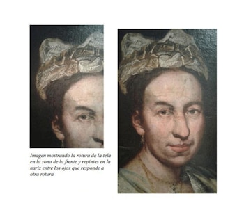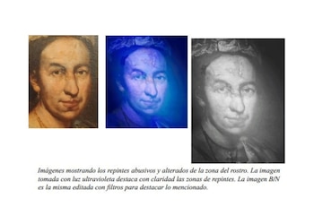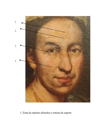 El soporte de tela original sufrió roturas que fueron reparadas y se encuentra adherido a un segundo lienzo de reentelado. Bajo luz ultravioleta, los especialistas detectaron repintes antiguos y modernos, algunos de los cuales modificaron levemente los rasgos de la cara. Se sugirió realizar estudios complementarios de rayos X para profundizar en la técnica de ejecución.
