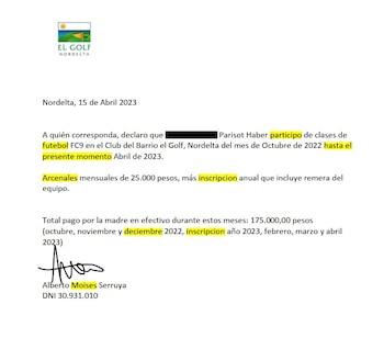 Entre las instituciones mencionadas en la documentación apócrifa figuran el colegio Northlands y el Nordelta Golf Club, cuyos representantes desconocieron formalmente ante la Justicia la validez de las facturas y recibos presentados, negando la existencia de los servicios facturados. Ese desconocimiento fue incorporado al expediente como prueba clave para acreditar la falsedad documental.