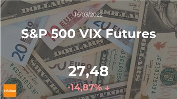3월 16일 수요일에 세션이 종료된 S&P 500 VIX 선물에 불리한 날로 14.87% 에서 27.48포인트로 큰 하락세를 보였습니다.S&P 500 VIX 선물은 최고 30.66점, 최저 27.48점을 기록했습니다.이날 S&P 500 VIX 선물의 최고점과 최저점 (고저점) 사이의 거래 범위는 10.37% 에 머물렀습니다.