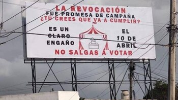 최근 4 월 10 일 일요일 위임 취소에 관한 대중 협의에 참여하도록 초대하는 거리에서의 선전 침공으로 최근 논란이 촉발 된 후, Andrés Manuel López 대통령에 대한 투표를 홍보하는 광고가 전국 여러 지역에 게재되었습니다.오브라도.