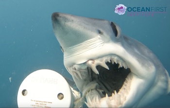 최근 OCEARCH 탐험에서 찍은 이미지는 입을 벌린 상어를 보여 주며 불규칙한 이빨이 늘어선 줄을 드러냅니다.콜로라도에 본사를 둔 오션 퍼스트 인스티튜트의 연구 및 보존 책임자 인 Chris Malinowski가 배치 한 보리 수중 카메라로 순간을 포착했습니다.