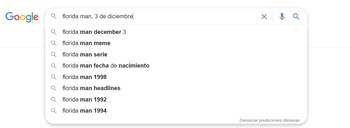 검색 엔진 “Florida man" (플로리다의 남성) 과 날짜를 입력하면 해당 문구와 함께 뉴스 헤드 라인이 표시되는 것을 볼 수 있습니다.이는 2013 년에 등장하여 현재까지 계속되는 바이러스 성 도전의 일부입니다. 네트워크 사용자는 언급 된 단어, 생일과 같은 날짜를 검색 한 다음화면 스크린샷을 이 주제와 관련된 뉴스와 공유합니다.