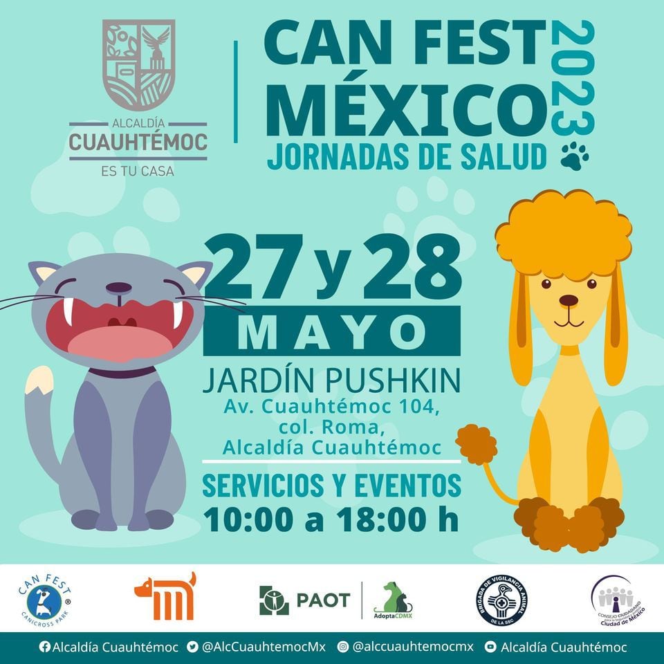 En el marco de esta celebración se llevará a cabo el Can Fest este próximo 27 y 28 de mayo en el Jardín Pushkin de la Ciudad de México, en este festival se llevarán a cabo diferentes actividades para que los perros y sus dueños puedan divertirse.
