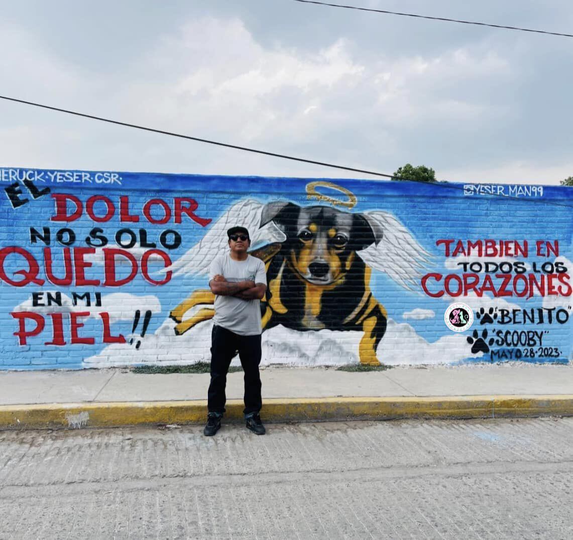A casi dos semanas del asesinato de Scooby, el perro que fue arrojado por un hombre a un cazo con aceite hirviendo en Tecámac, Estado de México, un artista urbano realizó un mural en su honor para recodar al canino que al principío fue conocido como Benito y se creía era una animal callejero.