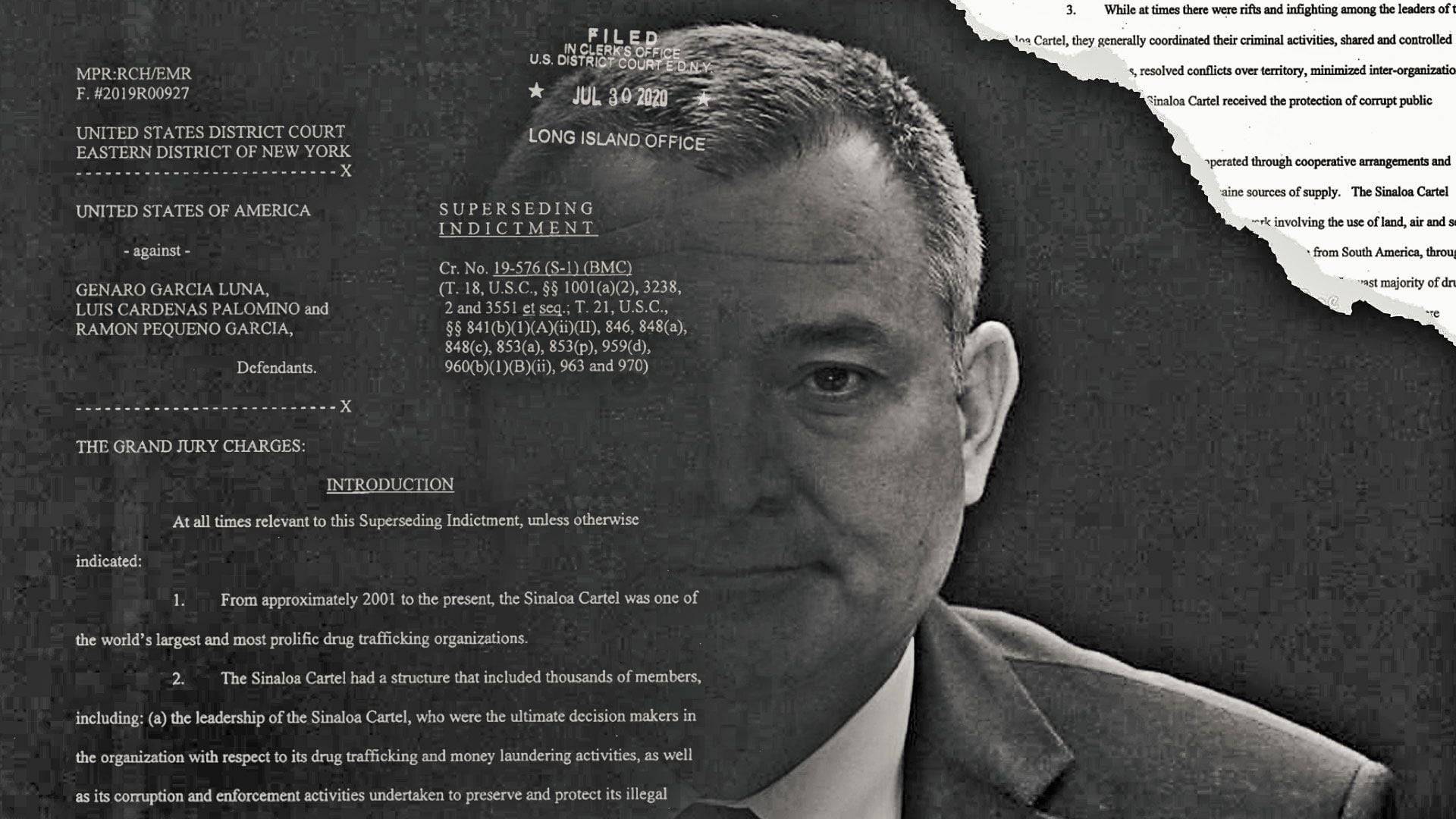 De acuerdo con el expediente F, #2019R00927, al que Infobae México tuvo acceso, que corresponde a la acusación levantada en el Tribunal del Distrito Este de Nueva York contra García Luna, Luis Cárdenas Palomino (ex director de Seguridad Federal de la Policía Federal) y Ramón Pequeño García (ex jefe anti drogas de la Policía Federal); los acusados abusaron de sus cargos públicos cometiendo los siguientes actos en favor del Cártel de Sinaloa: