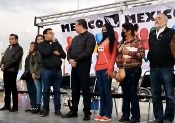 Este martes, Mejía se encontraba sobre un templete mientras recibía porras de los asistentes cuando una persona, aparentemente de su equipo de campaña, tomó el micrófono y aprovechó para denunciar los malos resultados del ex funcionario en materia de seguridad en otras zonas del país.