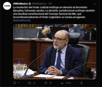 Edmundo Jacobo tiene derecho de permanecer como Secretario Ejecutivo, fue designado por el Consejo General del INE hasta el 6 de febrero de 2026. La determinación es muestra de los contrapesos necesarios en una democracia, que permiten un equilibrio de fuerzas: @DaniaRavel. pic.twitter.com/Y5KibxnJ2s