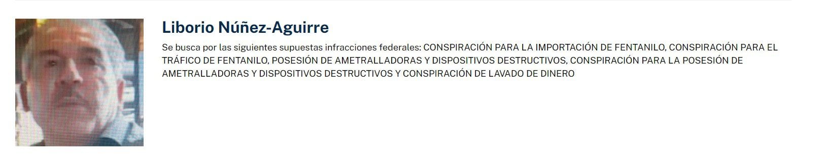 La agencia antidrogas señala a Iván Archivaldo Guzmán de ser la persona de instruir a sus operadores de poner el fentanilo “calles yonquis”. En la lista también se registró a Liborio Núñez-Aguirre, alias el Karateca, señalado por las autoridades estadounidenses de ser operador de Los Chapitos y de traficar grandes cantidades de fentanilo desde México a los Estados Unidos.