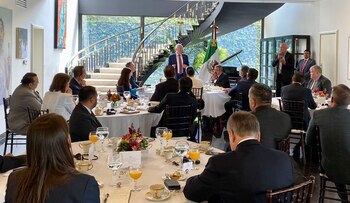 Además de su junta con la funcionaria, el embajador habría sostenido un encuentro con grupos empresariales del sector aéreo, y con quienes compartió una comida esta misma tarde.