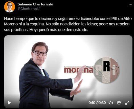 No obstante, los señalamientos contra el tricolor no sólo fueron en bardas, sino que se pasaron a redes sociales, así como radio y televisión, con dos spot. Uno de ellos fue el que se ordenó retirar y era el que estaba protagonizado por el exdiputado Salomón Chertorivski.